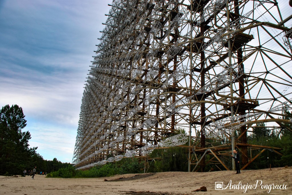 Na kosilo smo šli v menzo, kjer smo jedli skupaj s trenutnimi delavci elektrarne, ki jih je okrog 2000. Naslednja postaja je bil radar Duga-1. Skrivno vojaško bazo so za javnost odprli šele leta 2014. Dve gromozanski anteni sta bili zgrajeni za zračno obrambo pred možnimi izstrelki, predvsem iz ZDA. Anteni sta delovali le v fazi testiranja, zagon je preprečila nesreča v Černobilu. Da anteni ne bi bili vidni so okrog nasadili hektarje gozda, na cesti ki vodi v bazo je bila zapora, češ da je tam otroški kamp, da bi bila laž bolj verjetna so postavili tudi lažno avtobusno postajo.