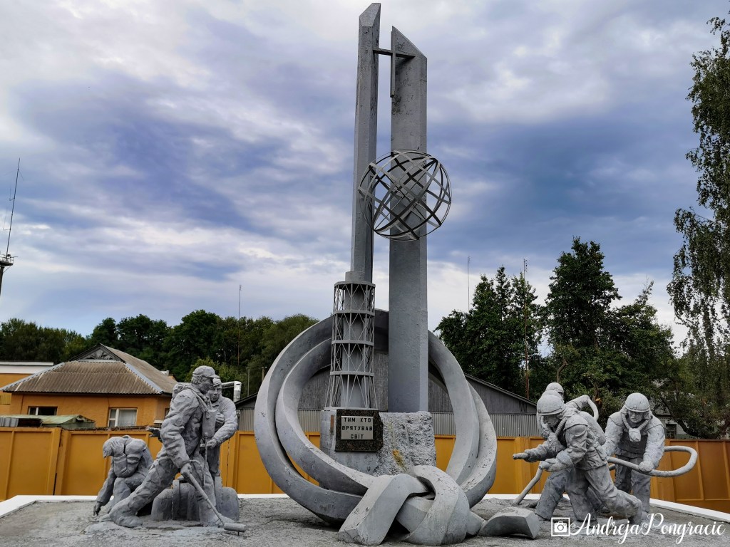 Zapeljali smo se okrog vseh štirih reaktorjev, se na hitro ustavili pri zloglasnem, ki je prekrit s sarkofagom in se zapeljali do mesta Černobil. Tam danes (ne več kot dva tedna naenkrat) živijo delavci elektrarne. V Černobilu stoji kip posvečen neimenovanim junakom Černobila: zdravnikom, sestram,gasilcem in čistilcem območja. Znotraj kipa je prava oprema, ki spomeniku daje obliko, saj so ga postavili prebivalci sami, ne vešči kiparjenja.